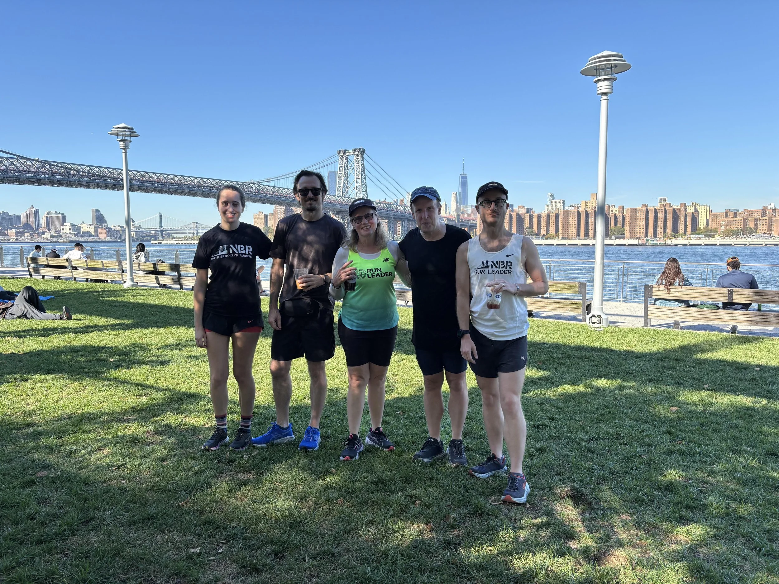 We run over the Williamsburg bridge and back at any pace you like. If you’re feeling spunky, run part of the bridge twice. Or turn around part way. Then it’s onto coffee.